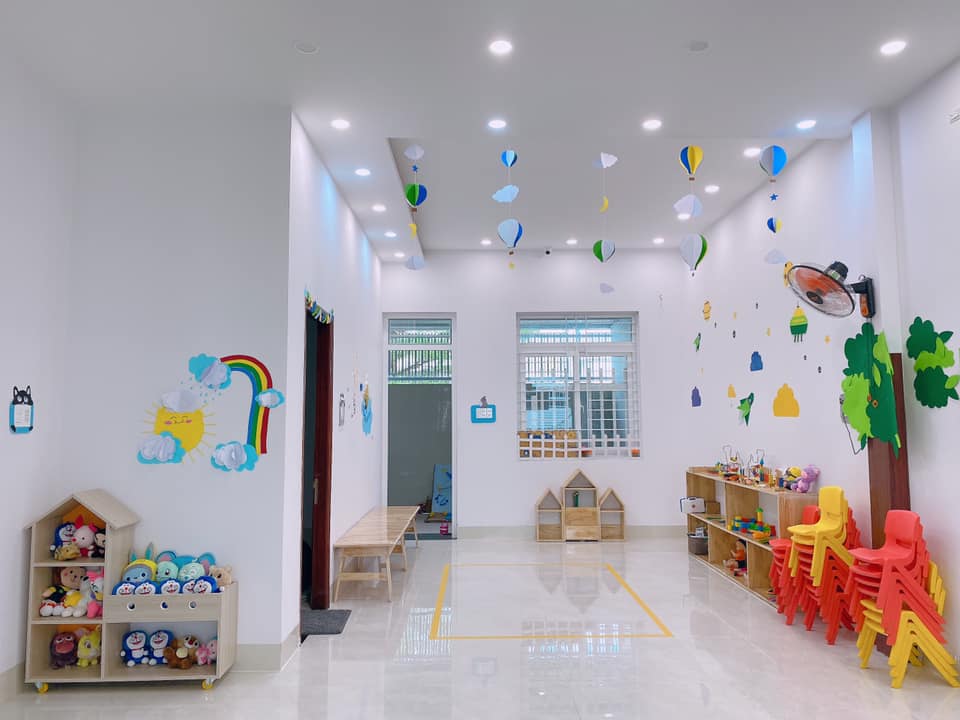Với tổng diện tích sử dụng gần 800m2, có 1 sân chơi trong nhà, 1 sân chơi ngoài trời, các lớp học nhiều ánh sáng tự nhiên, được thiết kế riêng phù hợp với nhu cầu học tập và vui chơi của các con