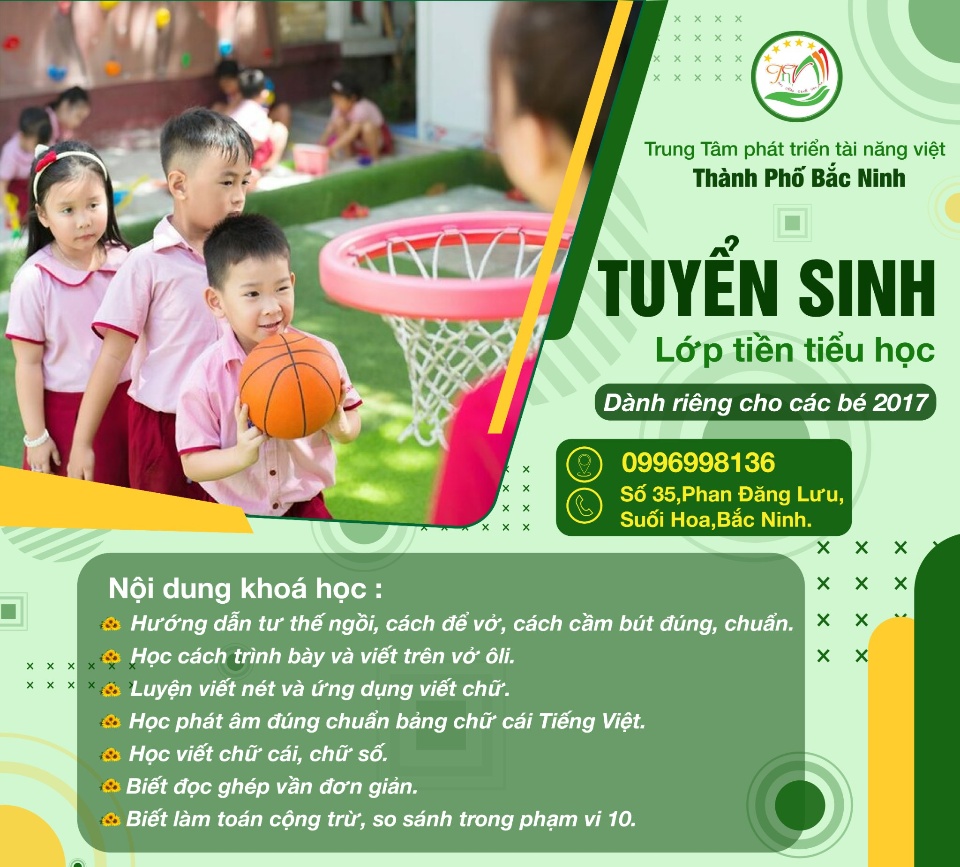 Trung Tâm Phát Triển Tài Năng Việt Thành Phố Bắc Ninh - Phan Đăng Lưu tuyển sinh các lớp: