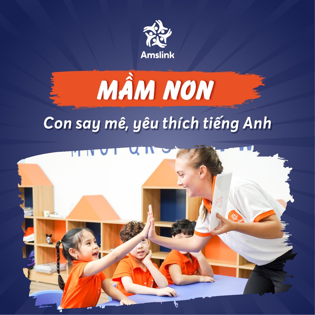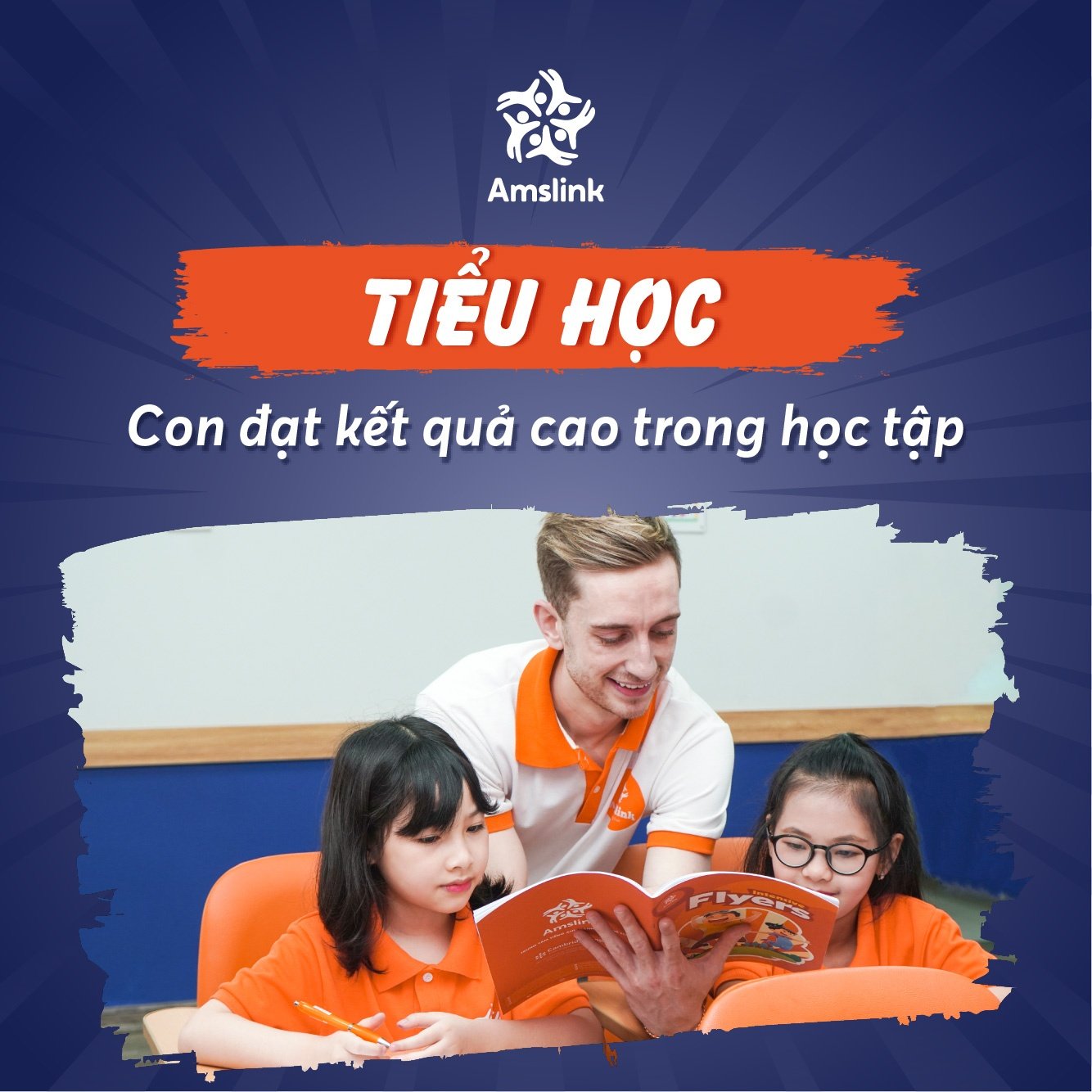 Đây là lứa tuổi tạo nền tảng tiếng Anh vững chắc và tạo sự yêu thích để tiếp tục hành trình lâu dài. Là một chuyên gia đào tạo về ngôn ngữ, Amslink phát triển chương trình học tiếng Anh dành cho tiểu học dựa trên chương trình của Bộ GD&ĐT, nội dung thi HSG, Olympic, giáo trình Anh Quốc, bộ đề thi Cambridge Tests for YLs tạo cơ hội cho rẻ được thỏa sức khám phá thế giới, tiếp thu kiến thức một cách chủ động và sáng tạo thông qua các bài học với các chủ đề hấp dẫn và đa dạng. Khóa học giúp các con: