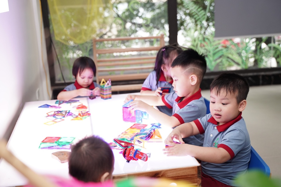 TỰ DO KHÁM PHÁ: Lớp học được xây dựng rộng rãi với không gian mở, các phòng chức năng nối tiếp nhau giúp trẻ có vị trí học riêng và tự lựa chọn các khu vực học tập ưu thích với mong muốn con được hình thành tính tự lập và chủ động trong các hoạt động trải nghiệm hàng ngày tại trường.