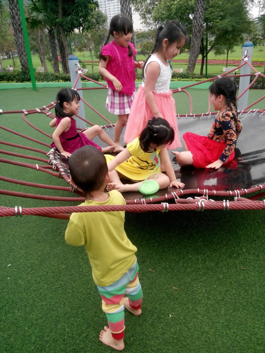 - Sân chơi phía ngoài lớp học, thoáng mát, nhiều đồ chơi đa dạng, phong phú. Sân chơi trong nhà được trải thảm an toàn, và được trang bị nhiều loại đồ chơi mang tính giáo dục cao.