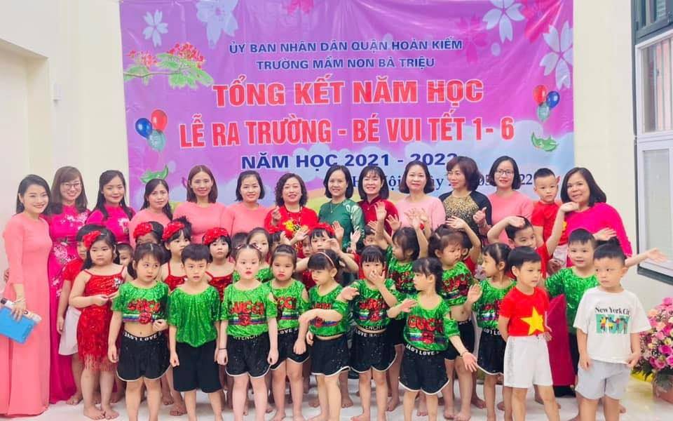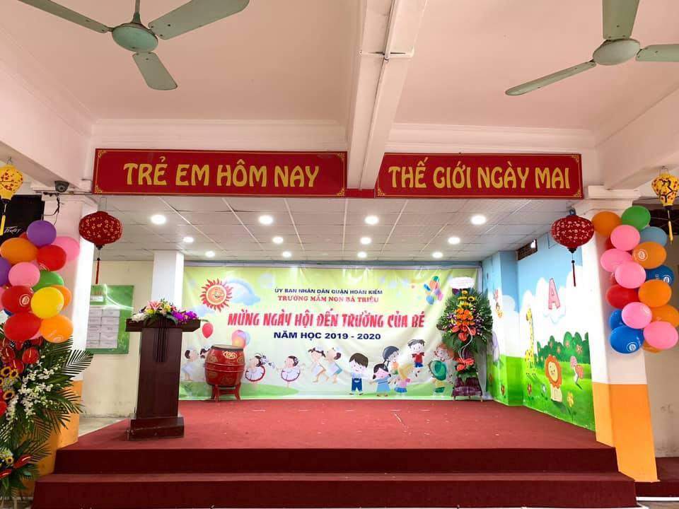 Trường luôn nhận được sự quan tâm, tạo mọi điều kiện đầu tư về CSVC của Quận uỷ, HĐND, UBND và được sự chỉ đạo sát sao về chuyên môn của Phòng Giáo dục và Đào tạo Quận Hoàn Kiếm và sự phối hợp chặt chẽ với các cấp các ngành, các đoàn thể trong Quận và UBND Phường Hàng Bài. Trường Mầm non Bà Triệu địa chỉ tại 65 Bà Triệu- quận Hoàn Kiếm- Hà Nội hiện có tổng số 12 lớp và có tổng số học sinh là 439 trẻ trong đó có 2 lớp nhà trẻ, 10 lớp mẫu giáo.