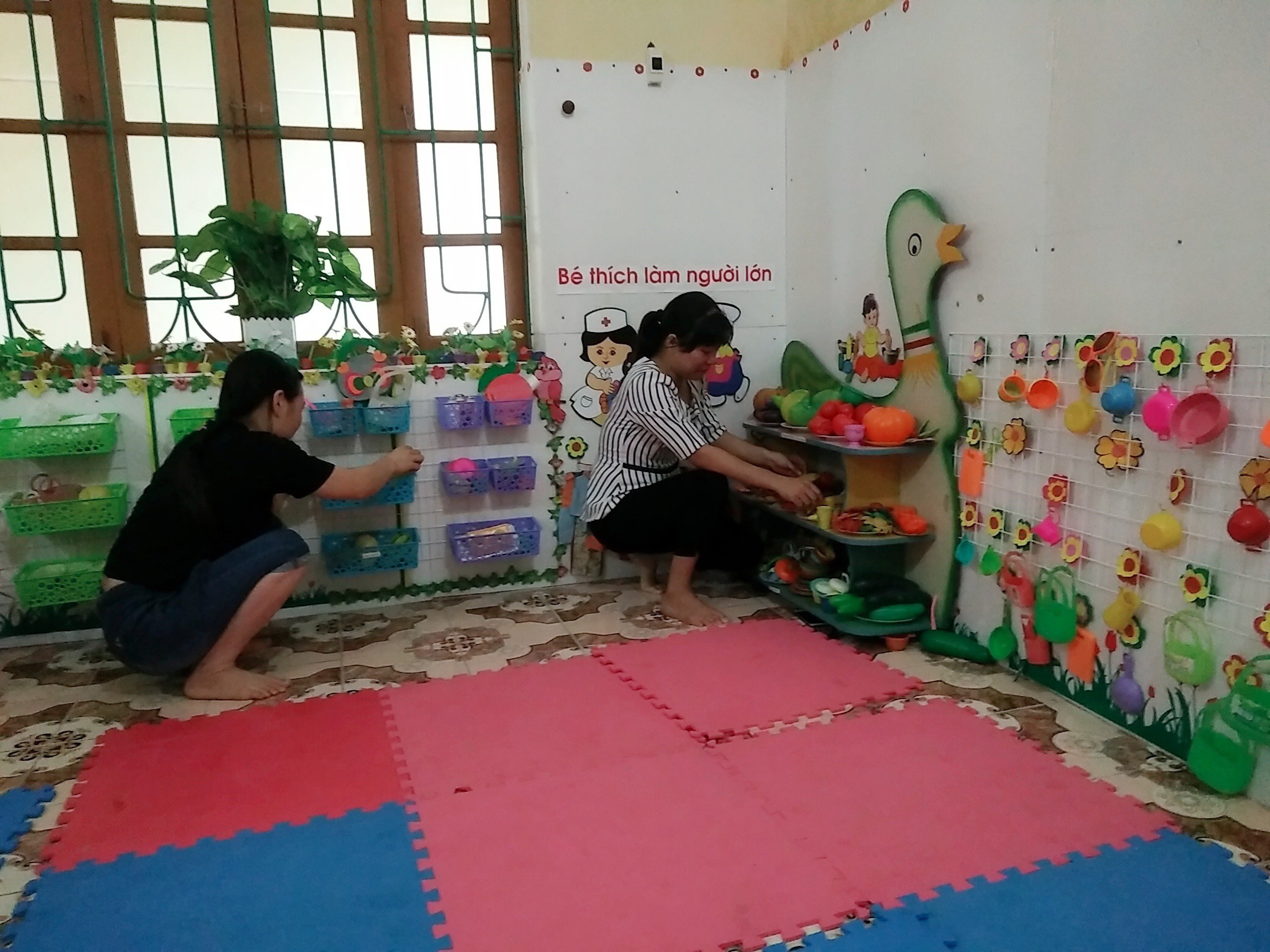 cạnh đó, do làm tốt công tác xã hội hóa nên hàng năm cơ sở vật chất trường lớp được tăng cường, bổ sung, phục vụ thuận lợi cho việc dạy và học. Trường có 13/13 phòng học được xây dựng kiên cố, đảm bảo diện tích thoáng mát, đủ ánh sáng, trang bị đầy đủ điều hòa, bình nóng lạnh phục vụ cho trẻ học tập và vui chơi.