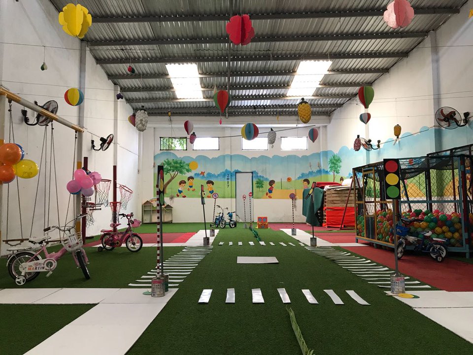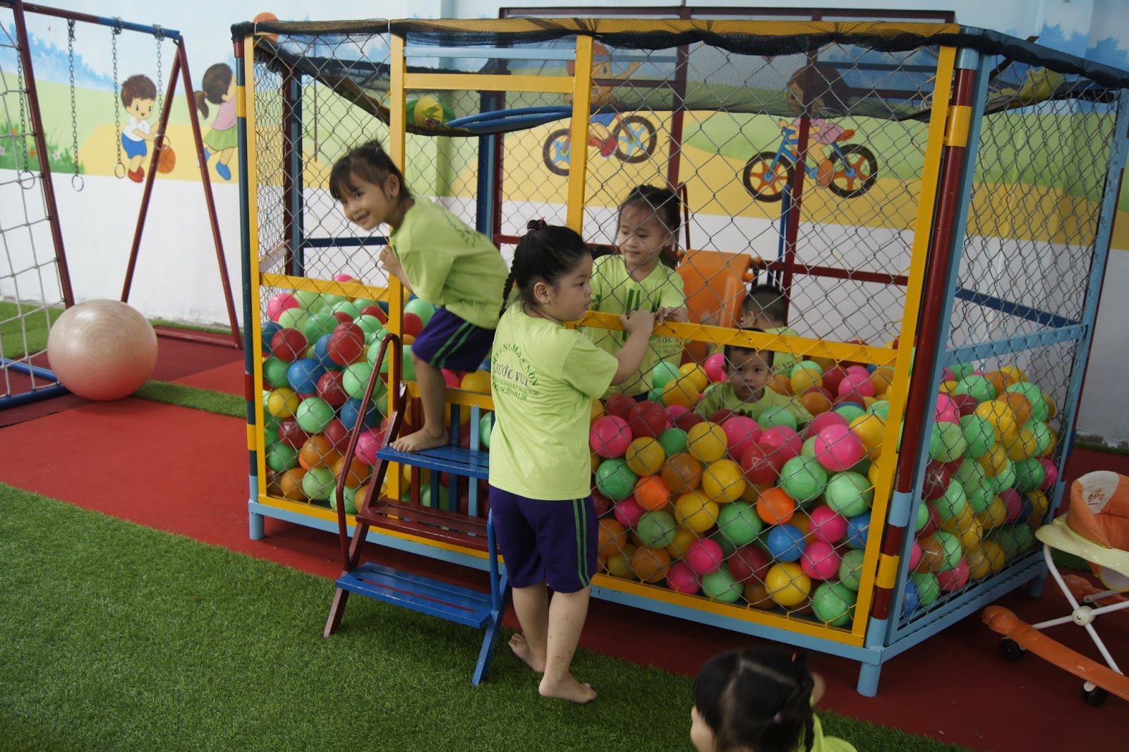 - Sân chơi: Trường có 3 sân chơi nhỏ và một sân chơi có mái che hơn 200m2.Trẻ có thể chơi thể thao: bóng đá, bóng rổ, bóng chuyền, xe đạp hay bơi lội. Với các trẻ nhỏ hơn các em có thể chơi xích đu, nhà banh hay cầu trượt,...