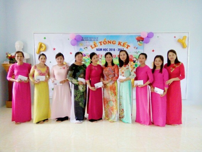 Về số lượng và chất lượng giáo viên: Từ 6 CBGV năm 2010 đến nay CB,GV nhà trường đã tăng từng năm học, năm 2016 – 2017 toàn trường có 13 đ/c. Trong đó có 9/13 CB-GV có trình độ trên chuẩn. Hằng năm số giáo viên thi dạy giỏi cấp trường tăng dần, cấp huyện 7 đ/c, cấp tỉnh 1 đ/c. Danh hiệu tăng theo từng năm, đặc biệt là danh hiệu chiến sĩ thi đua cấp cơ sở 5 đ/c, chiến sĩ thi đua cấp tỉnh 1 đ/c.