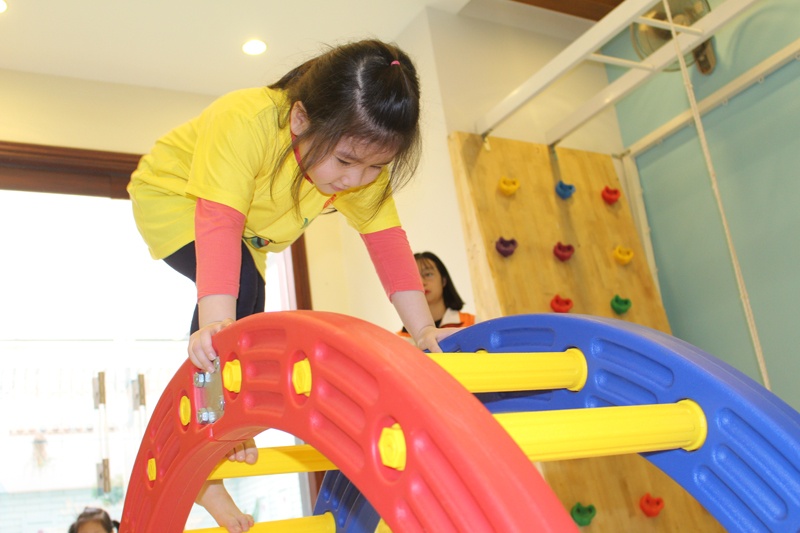 Trường nhận chăm sóc trẻ từ 18 tháng – 5 tuổi và phụ huynh có thể đăng ký cho bé học cả ngày hoặc theo ca tùy vào điều kiện gia đình. Quy trình đào tạo tại trường được công khai, để các bậc phụ huynh có thể dễ dàng đối chiếu với hoạt động thực tế. Giáo án giảng dạy sẽ được gửi về gia đình để nắm bắt chương trình và ba mẹ có thể dựa vào tài liệu này để dạy thêm cho bé tại nhà.