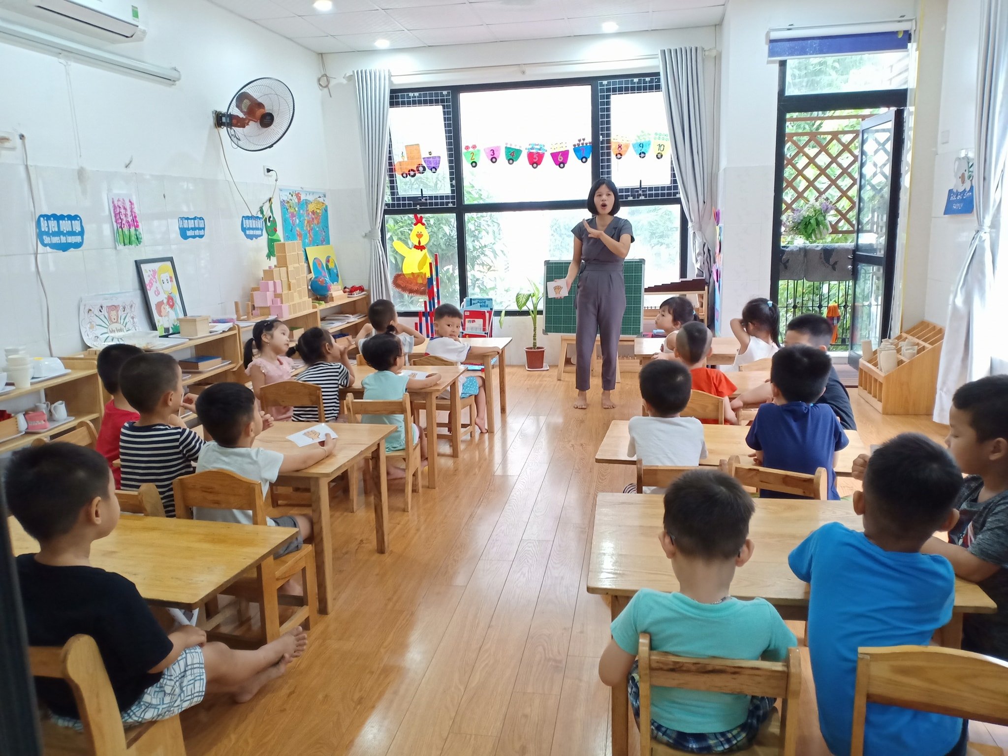 1. Phòng học rộng, thoáng với diện tích 40-60m2, có đầy đủ trang thiết bị, đồ dùng đồ chơi hiện đại phục vụ công tác chăm sóc, nuôi dưỡng, giáo dục.