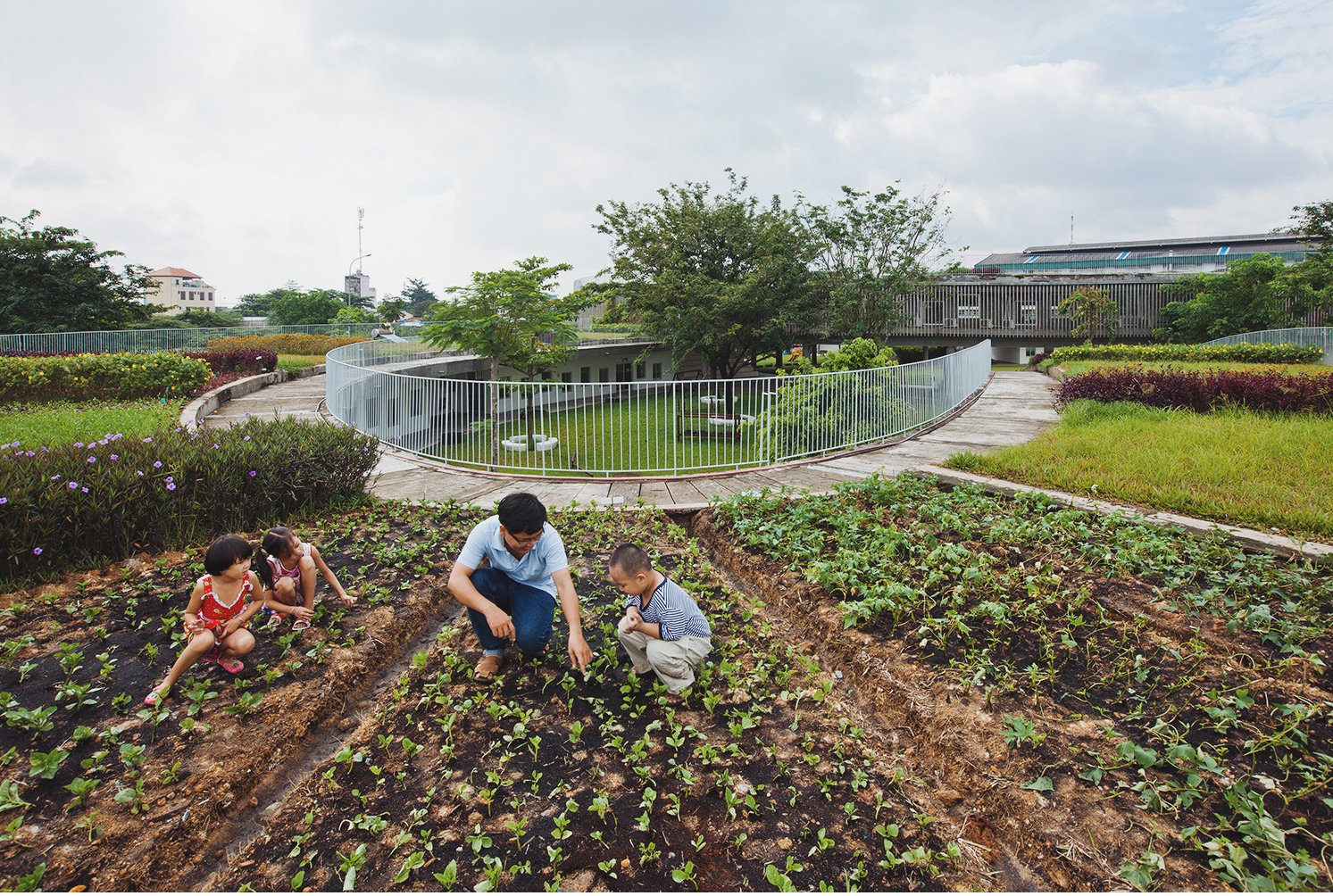 Không chỉ là nơi vui chơi và học tập cho trẻ em, thiết kế của nhà trẻ còn giúp tiết kiệm năng lượng khi các căn phòng ở đây đều được thiết kế thoáng mát, tận dụng gió trời và cây xanh để không phải sử dụng điều hòa. Các thiết bị như pin năng lượng mặt trời, máy lọc nước, cửa thông gió... được tận dụng để mang lại tính bền vững cao nhất cho công trình. Sau 10 tháng đầu đi vào hoạt động, công trình đã tiết kiệm được 25% lượng năng lượng so với bình thường. Chưa hết, tại khu vực trên mái nhà các thầy cô, phụ huynh có thể trồng các loại cây xanh, rau sạch cho bữa ăn của trẻ.