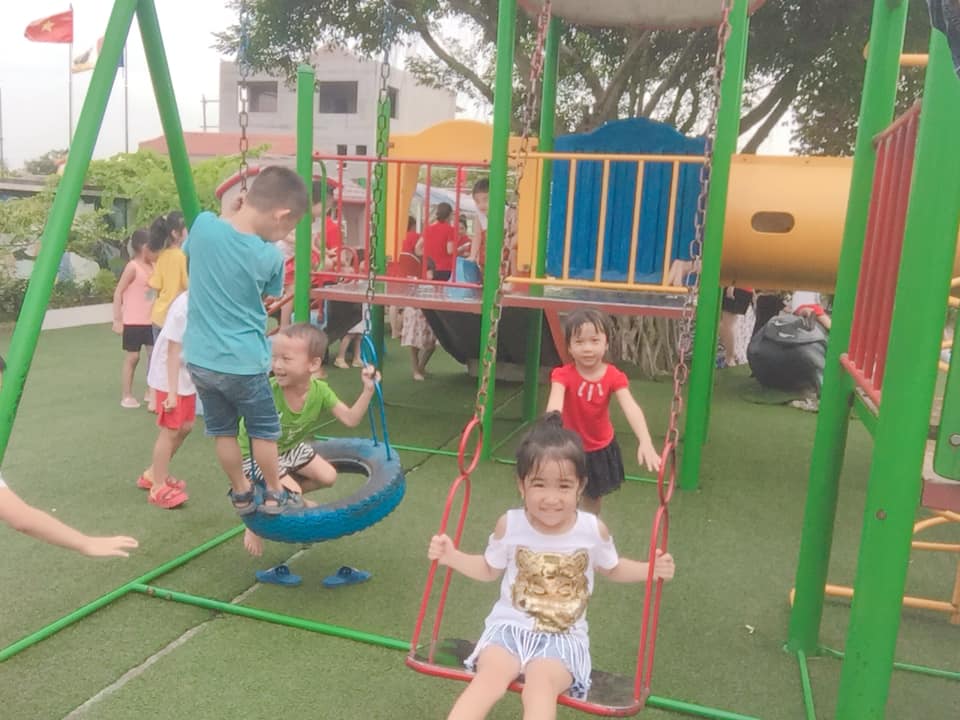 - Cơ sở vật chất, trang thiết bị phục vụ cho công tác chăm sóc, nuôi dưỡng, giáo dục trẻ đầy đủ, đẹp, phù hợp với trẻ, đúng quy định. Có sân cỏ nhân tạo, đồ chơi ngoài trời hiện đại, an toàn cho trẻ vui chơi và phát triển toàn diện.