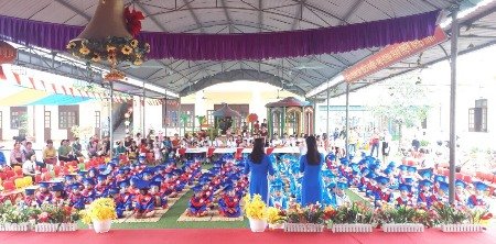 Trong những năm gần đây, với tổng số CBGV luôn duy trì từ 21 - 26 Đ/c, năm học 2008 - 2009 có 02 Đ/c đạt chiến sĩ thi đua cấp Huyện, 05 Đ/c giáo viên giỏi cấp Huyện, 13 Đ/c lao động tiên tiến và 01 tổ lao động giỏi. Nhà trường đạt trường tiên tiến cấp Huyện, Công đoàn liên tục đạt danh hiệu Công đoàn vững mạnh. Chi bộ 10 có 12 Đ/c Đảng viên do Đ/c Nguyễn Thị Tẹo làm bí thư Chi bộ. 100% Đảng viên của Chi bộ đều đủ tư cách hoàn thành tốt nhiệm vụ, Đ/c luôn đạt danh hiệu Đảng viên đủ tư cách hoàn thành xuất sắc nhiệm vụ được Huyện Đảng bộ công nhận Đảng viên xuất sắc 3 năm liền. Năm học 2008 - 2009, trường có 185 học sinh với 11 nhóm lớp. Đội ngũ CB, GV, NV nhà trường gồm 22 Đ/c có trình độ chuẩn và trên chuẩn. Tuy có Đ/c gia đình ở xa trường nhưng các Đ/c đều nhiệt tình, yêu nghề, mến trẻ tận tâm với công việc, hết lòng vì học sinh thân yêu. Hàng năm nhà trường luôn quan tâm tới việc bồi dưỡng đội ngũ giáo viên nhằm nâng cao trình độ chuyên môn nghiệp vụ. Các tổ chuyên môn hoạt động tích cực, có hiệu quả.