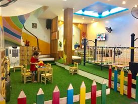 - Với diện tích mặt bằng 250m2 x 4 tầng, và một sân chơi với hệ thống đồ chơi sạch sẽ như xích đu, bập bênh, mâm giống quay… các con sẽ có một không gian vui chơi thoải mái khi đi học về. Đồng thời cũng là không gian cho các con tập thể dục mỗi sáng.