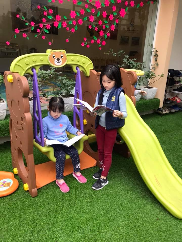 -Bước chân vào trường là phòng thư viện với nhiều loại truyện tranh đầy màu sắc sinh động, tạo cho trẻ tập làm quen với phong cách học theo hình ảnh , kích thích sự đam mê khám phá, giúp trẻ yêu thích môn đọc ngay từ nhỏ.