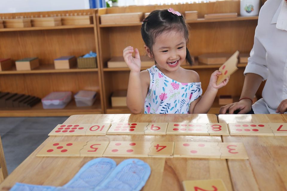 MONTESSORI: nuôi dưỡng bán cầu não trái, nơi có nhiệm vụ xử lý ngôn ngữ, con số, khả năng lý luận, phán đoán và tư duy logic.