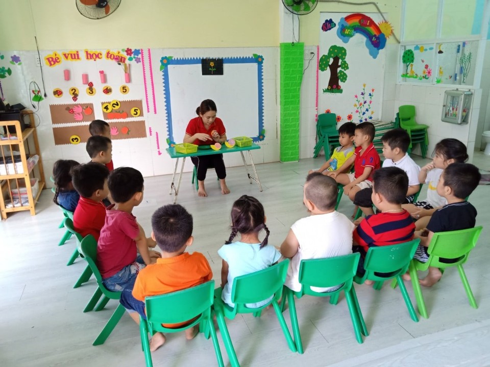 + Các lớp học được trang bị các thiết bị như hệ thống đèn quạt, tivi, máy lạnh, chăn gối, kệ tủ đồ chơi, giường ngủ, thảm trải, bàn, ghế, tủ, giá đựng đồ dùng bé…..