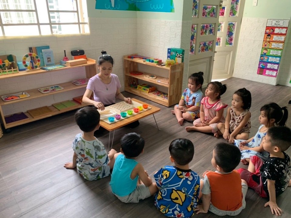 Trường mầm non Mộc Nhiên ứng dụng phương pháp thực hành Montessori trong việc học tập của các con.