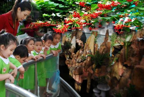 - Hệ thống thiết bị dạy học đồng bộ, hệ thống kệ, giá, tủ phù hợp theo từng góc học tập của các bé như góc Tạo hình, góc Xây dựng, góc Âm nhạc, góc Thiên nhiên…