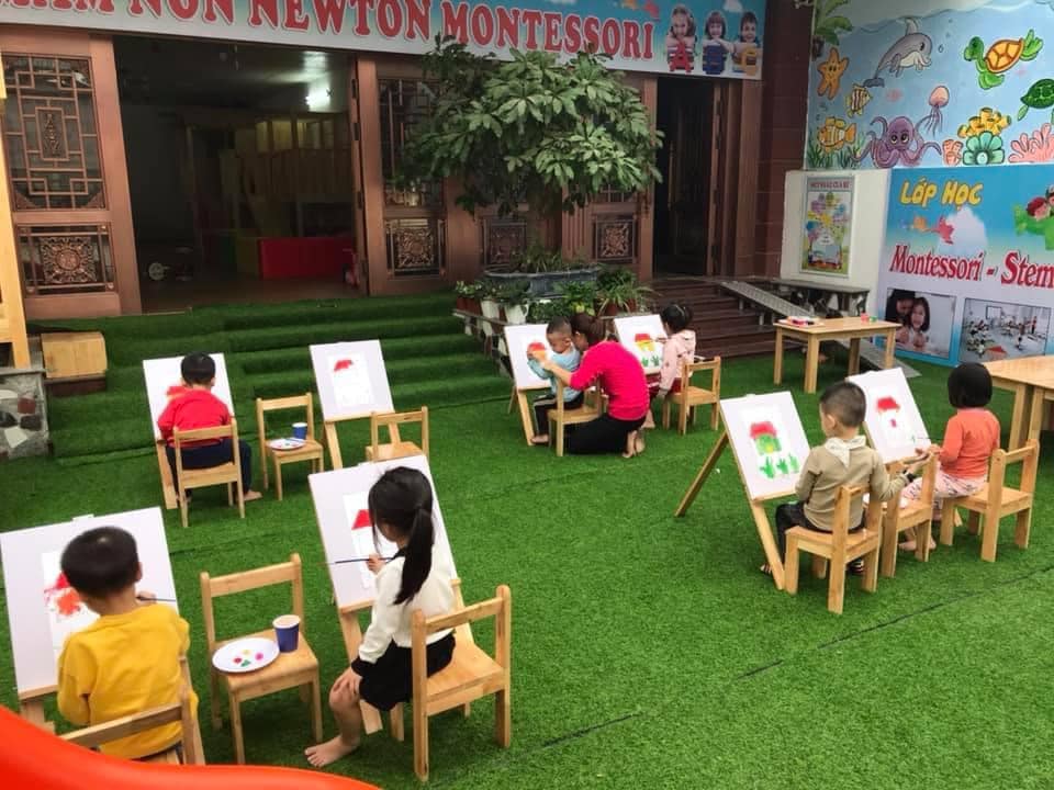 Trường mầm non Newton Montessori có 9 lớp học, diện tích lớp học 80 m2. Có khu vui chơi, phòng chức năng...