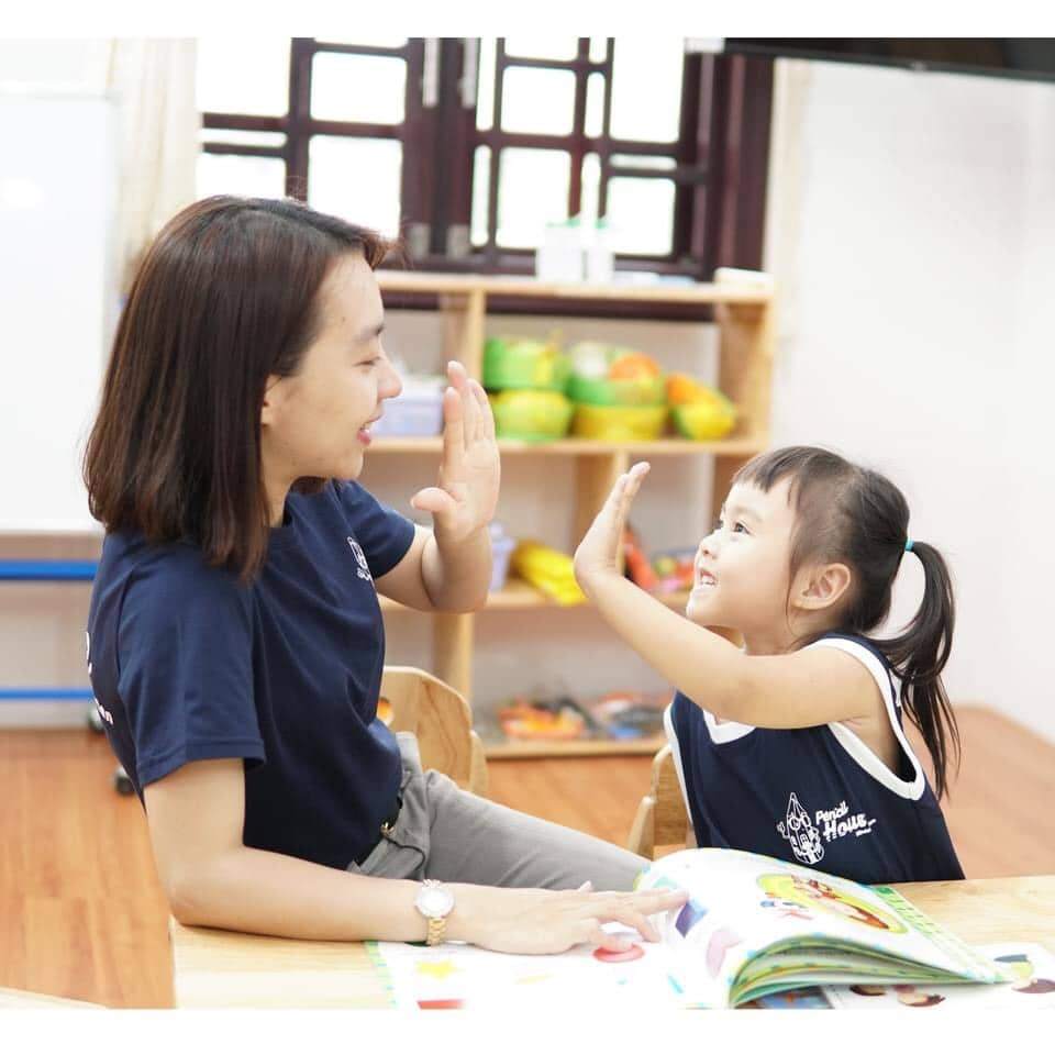 - Với mục tiêu giúp trẻ phát triển tốt song song hai ngôn ngữ tiếng Anh và tiếng mẹ đẻ, Pencil House chọn lựa dạy trẻ tiếng Anh bằng những phương pháp tiên tiến nhất. Học sinh học trong môi trường tiếng Anh (tổng cộng 3 giờ mỗi ngày), với đội ngũ các giáo viên phụ trách lớp học là giáo viên nước ngoài, có trình độ và kinh nghiệm giảng dạy.