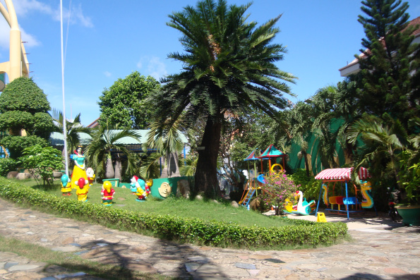 1. Trường có sân chơi rộng, thoáng mát, có nhiều cây xanh, có đủ đồ chơi ngoài trời.