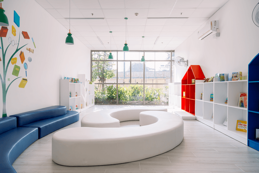 Blue Sky Kindergarten - Orchard bao gồm 11 phòng học, 2 phòng chức năng rộng hơn 55m2, lát sàn gỗ, phòng học máy lạnh, hệ thống nước nóng năng lượng mặt trời.
