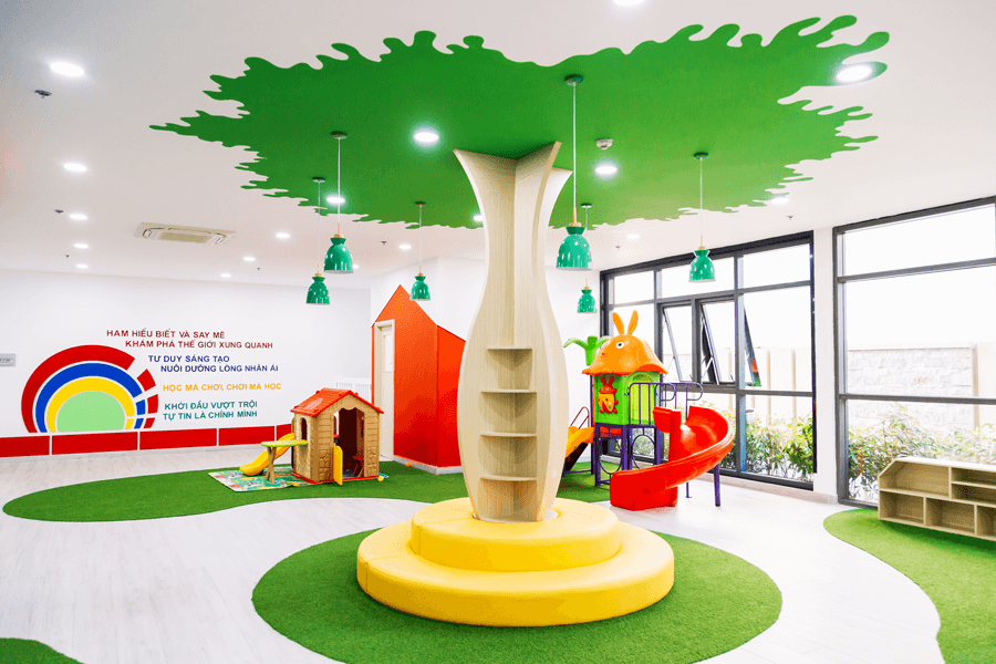 Sân chơi ngoài trời thoáng mát, sạch sẽ.