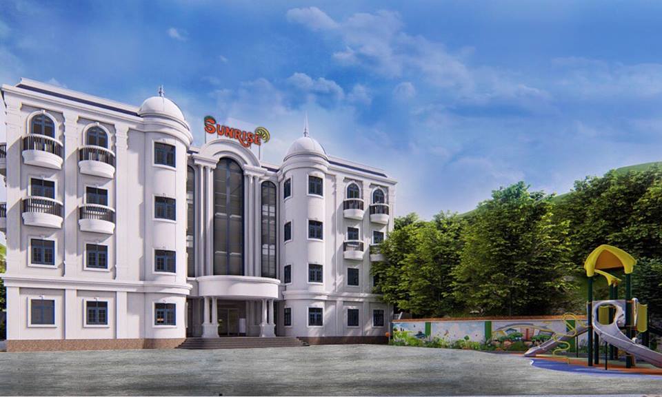 Đến với trường MN SUNRISE chúng ta thật sự bị cuốn hút bởi khuôn viên trường, lớp thật vui tươi, đẹp mắt, được sắp xếp một cách khoa học. Nhà trường được đầu tư xây dựng theo quy mô trường đạt chuẩn Quốc gia, chất lượng cao, với 01 tòa nhà 04 tầng, tổng diện tích xây dựng 510,5m2, diện tích sàn 2.042 m2, với 24 phòng được bố trí làm phòng học, phòng làm việc, phòng hoạt động chức năng, nhà bếp; có công trình vệ sinh cho cán bộ, giáo viên, nhân viên; có sân chơi, có vườn hoa cây xanh, hệ thống cấp thoát nước, hàng rào bảo vệ; có thang máy và thang bộ thuận tiện cho việc di trẻ chuyển từ tầng 1 lên tầng 4.