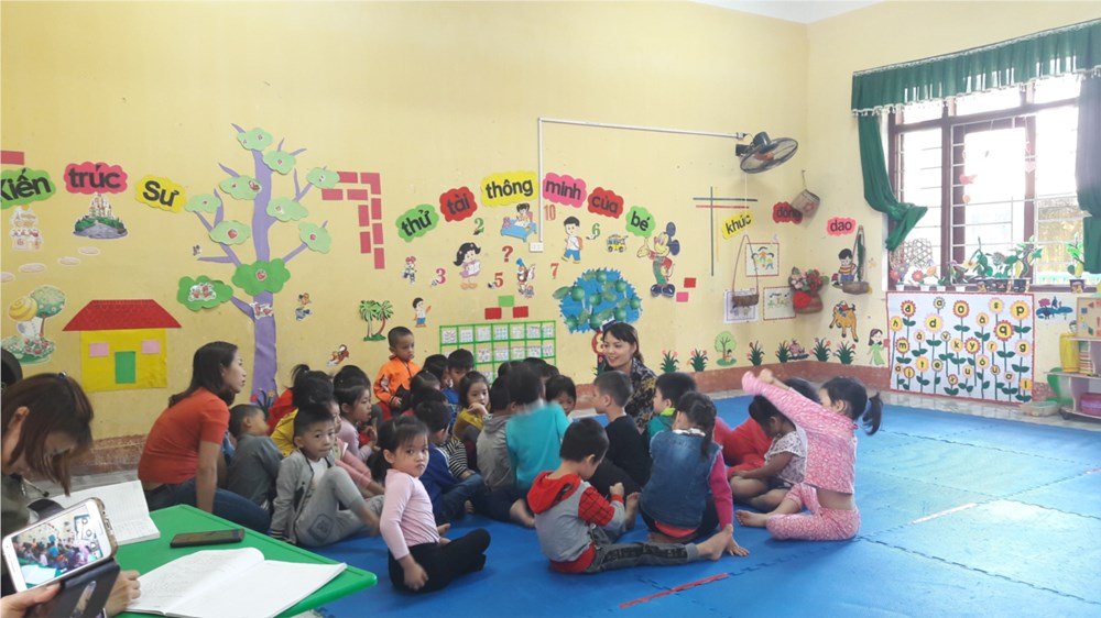 Trường của chúng tôi có 26 đồng chí CBGV – CNV. Trong đó có 15 đồng chí đạt trình độ trên chuẩn chiếm tỷ lệ 58%, số còn lại đang theo học nâng chuẩn tại trung tâm giáo dục thường xuyên của tỉnh. Hiện nay chúng tôi đang quản lý 325 cháu trên 10 lớp của trường. Trong những năm gần đây nhà trường đã không ngừng phấn đấu vươn lên trong sự nghiệp chăm sóc giáo dục trẻ và đã đạt những kết quả đáng khích lệ:
