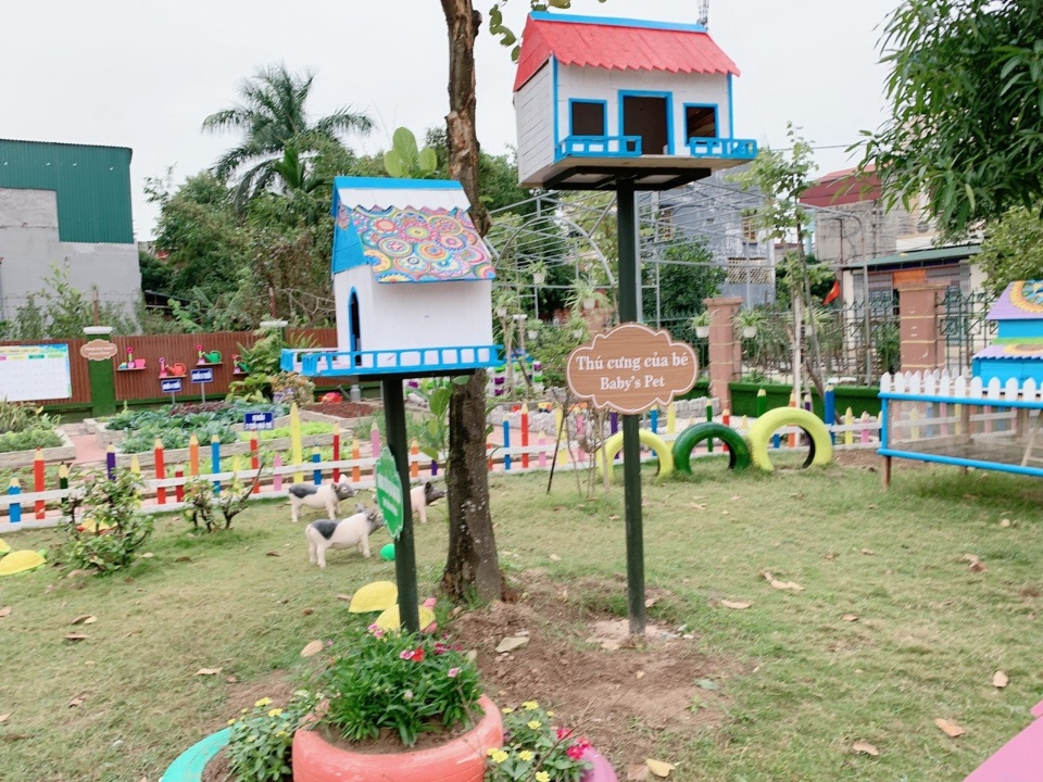Phòng học rộng rãi thoáng mát, ánh sáng chan hoà, cơ sở vật chất bên trong phòng đầy đủ, sân chơi với bóng cây bao phủ tạo nên một không gian tươi mới phù hợp với lứa tuổi hồn nhiên của các bé.