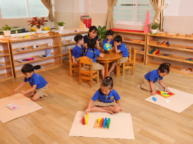 - Học cụ trong các lớp học Mầm non được thiết kế và sắp xếp trật tự và hợp lý giữa các hoạt động. Trẻ được lựa chọn học cụ, tương tác tích cực với giáo viên và các bạn để kích thích nhu cầu khám phá, thúc đẩy sự phát triển toàn diện của trẻ.