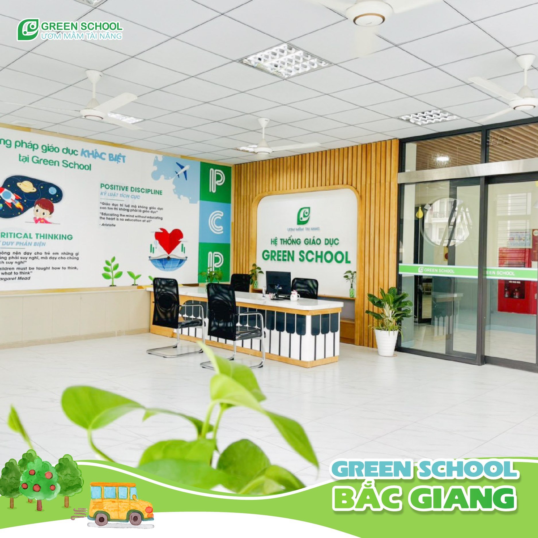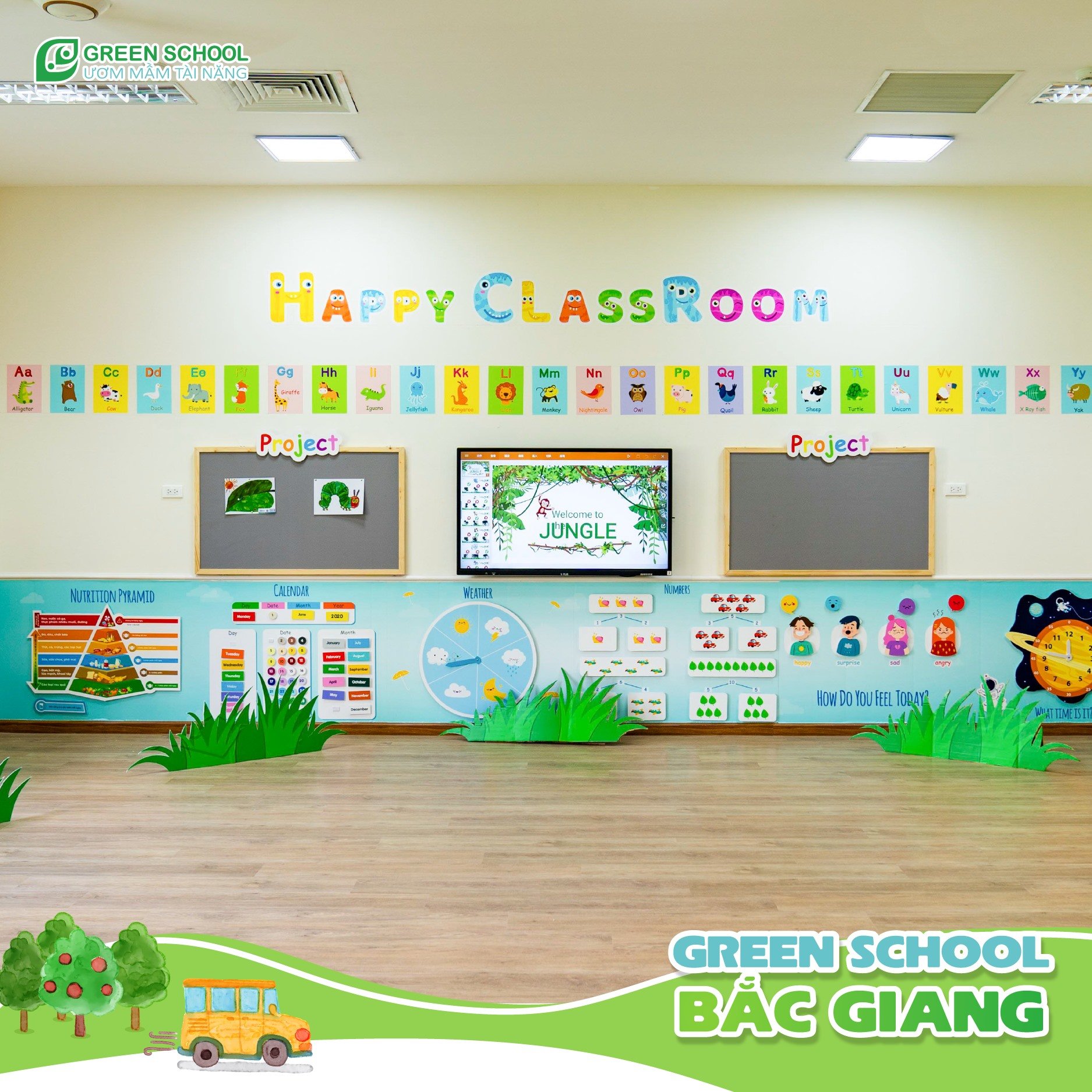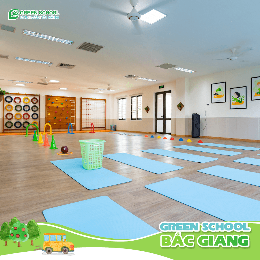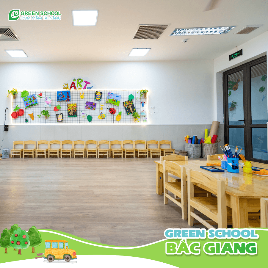 Hệ thống phòng học tại Green School Bắc Giang: Phòng học tối ưu với khu rửa tay và nhà vệ sinh riêng biệt: Tưởng chừng là chi tiết nhỏ nhưng hiệu quả giữ vệ sinh rất lớn. Khi để chung khu đánh răng và rửa mặt với nhà vệ sinh sẽ dễ sinh ra môi trường thuận lợi cho vi khuẩn phát triển.Hệ thống phòng học chức năng & khu vui chơi được trang bị đầy đủ nhất.