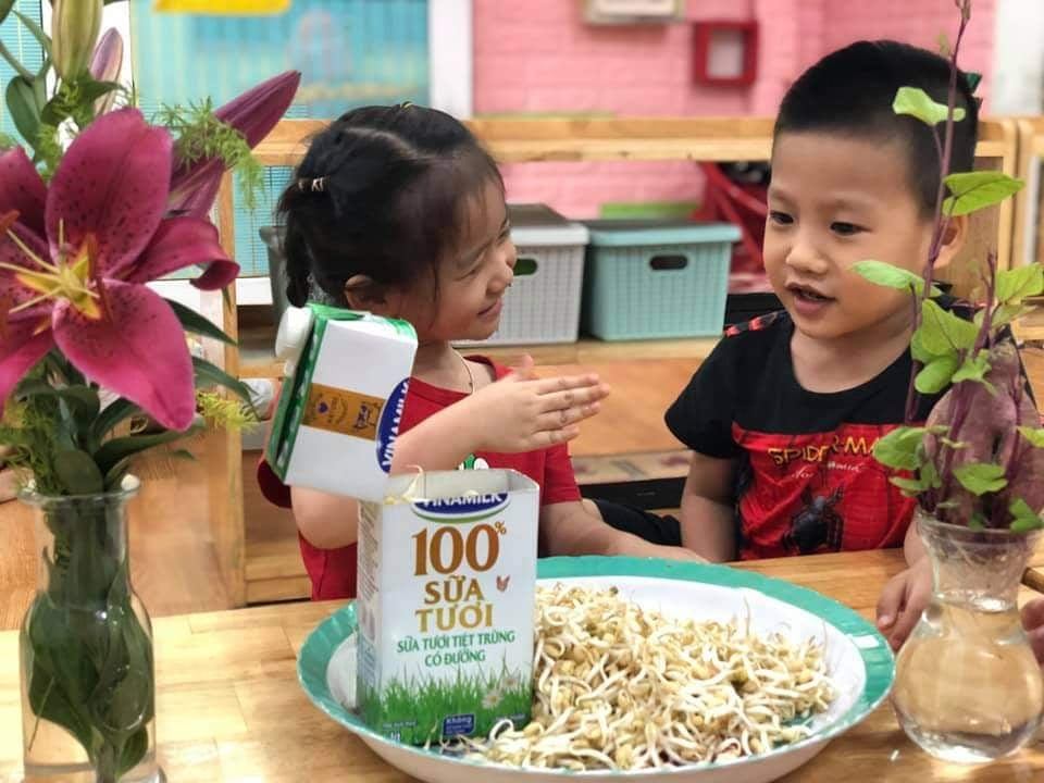 Nhà trường sử dụng các loại hạt Organic để làm sữa thay thế cho sữa bột. Nguyên tắc mix các loại hạt: Hạt giàu vitamin, khoáng chất mix với hạt giàu chất béo để cho bé dễ hấp thu các dưỡng chất. Hạt có tính âm kết hợp với hạt có tính dương, do đó sữa có tính trung hòa, giúp hệ tiêu hóa cân bằng.