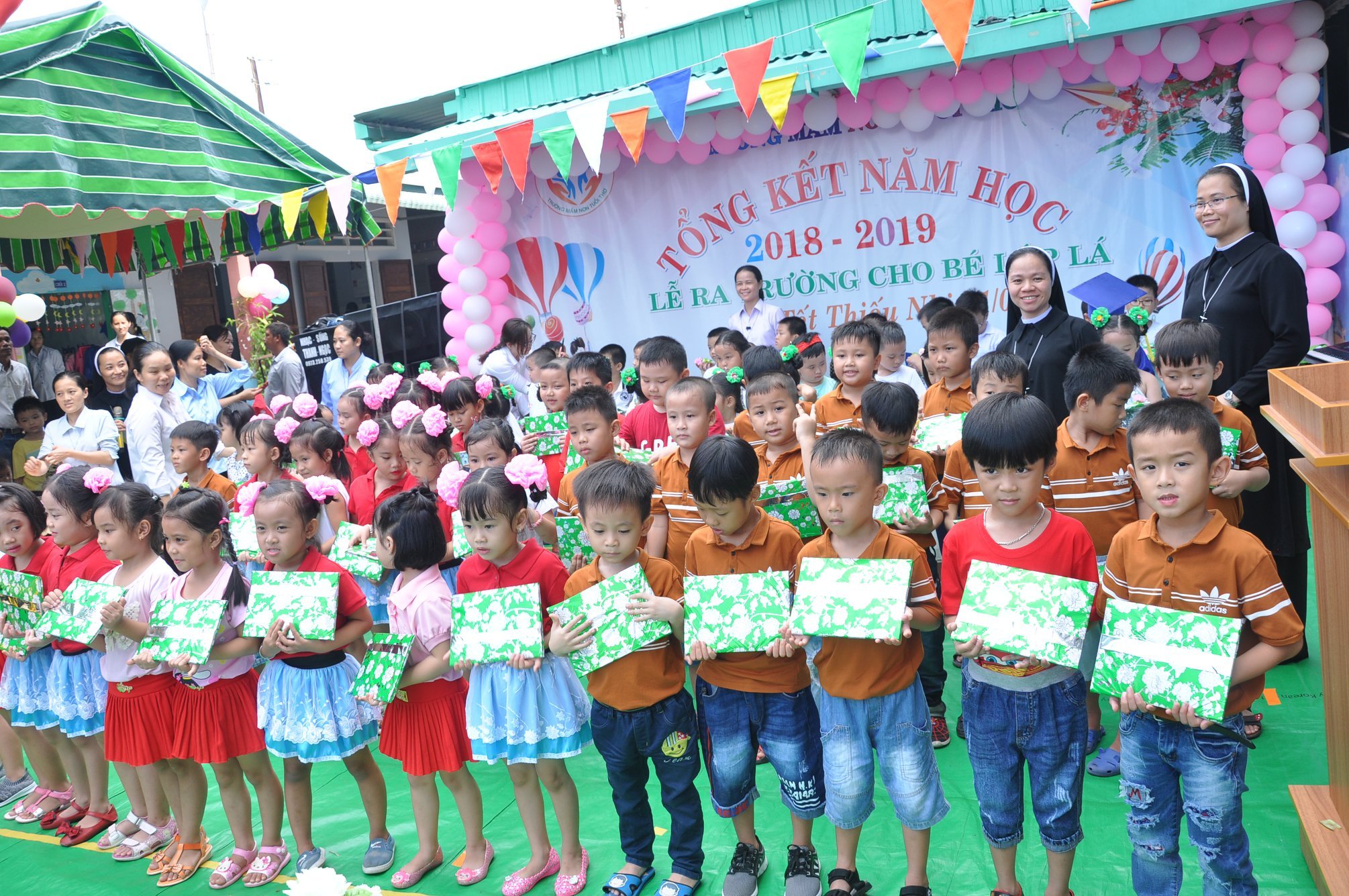 Trường Mầm Non Tuổi Thơ chăm sóc và giáo dục trẻ từ 2-5 tuổi, do Quý Sơ Công Giáo thuộc Hội Dòng Mến Thánh Giá Mỹ Tho phụ trách.