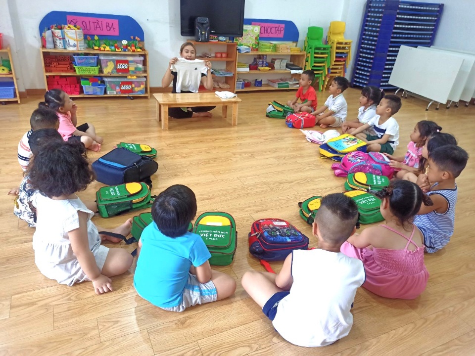 - 1 lớp lá: được trang bị máy điều hòa, tivi, máy vi tính, giường , tủ, gối, kệ đồ chơi, đồ dùng dạy học hiện đại, đầy đủ ...phù hợp cho trẻ hoạch động.