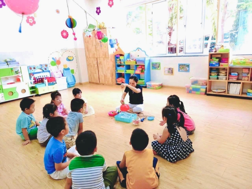 - 1 lớp lá: được trang bị máy điều hòa, tivi, máy vi tính, giường , tủ, gối, kệ đồ chơi, đồ dùng dạy học hiện đại, đầy đủ ...phù hợp cho trẻ hoạch động.