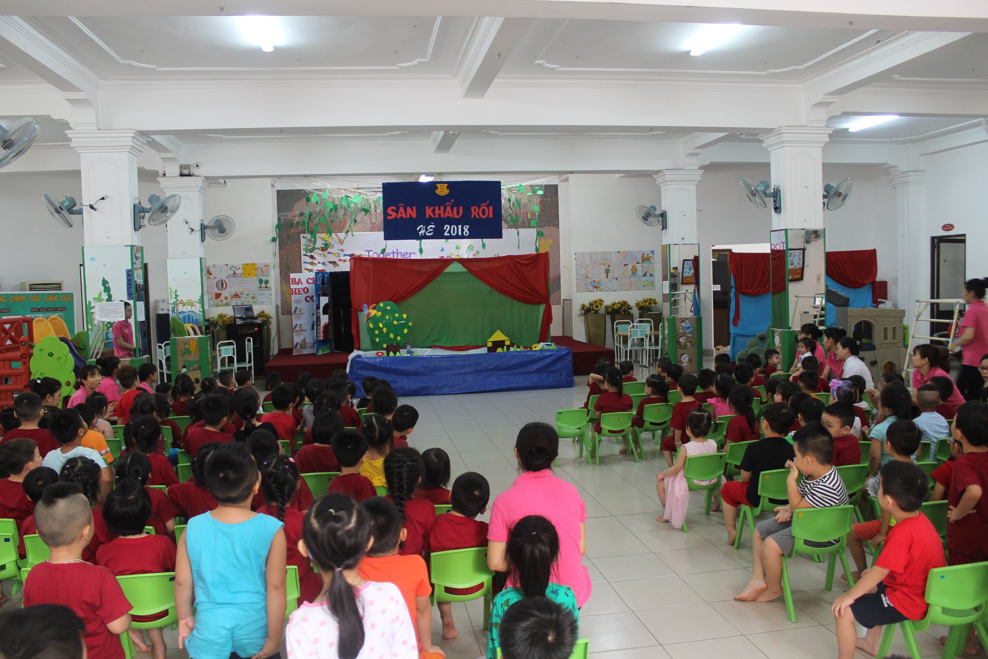 Tại đây các bé được tham gia các hoạt động học tập và vui chơi như: thảo luận, trả lời các câu hỏi sau khi xem phim, đóng kịch, biễu diễn văn nghệ, … giúp các bé xây dựng lòng tự tin, khả năng nói trước công chúng, … từ khi còn rất nhỏ.
