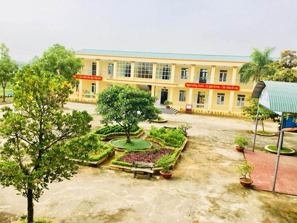 Từ chỗ cơ sở vật chất phải đi mượn của trường tiểu học, nơi làm việc của Ban giám hiệu nhà trường phải đi mượn của trạm y tế xã. Đến nay, nhà trường đã có cơ sở vật chất khang trang, môi trường xanh, sạch đẹp với hai dãy phòng học cao tầng và phòng chức năng cùng 01 dãy nhà kiên cố đáp ứng yêu cầu chăm sóc giáo dục trẻ.