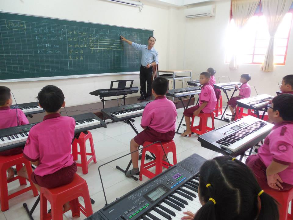 - Nhà trường áp dụng phương pháp dạy học tiên tiến theo xu hướng đổi mới lấy học sinh làm trung tâm: “Thầy chủ đạo – Trò chủ động”. Trong lớp giáo viên tổ chức lớp học dưới nhiều hình thức khác nhau: thảo luận nhóm, trò chơi học tập,… Áp dụng Phương pháp bàn tay nặn bột, Phương pháp dạy học Đan Mạch trong môn mỹ thuật,… Qua đó giúp học sinh phát triển 1 số kĩ năng như kĩ năng hợp tác, kĩ năng giải quyết vấn đề, kĩ năng thuyết trình trước đám đông, tư duy học tập,… Thông qua các bài giảng giáo viên lồng ghép nội dung giáo dục gia đình, thầy cô, bạn bè, tình yêu quê hương đất nước, chủ quyền biển đảo,….