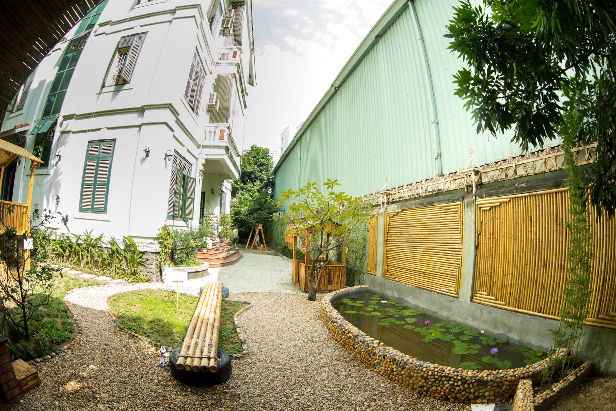 "Trường nằm trong hẻm nên rất yên tĩnh và tránh xa tiếng ồn nhưng hơi nhiều muỗi vì trải thảm nhân tạo bên ngoài, mưa gây ẩm thấp."