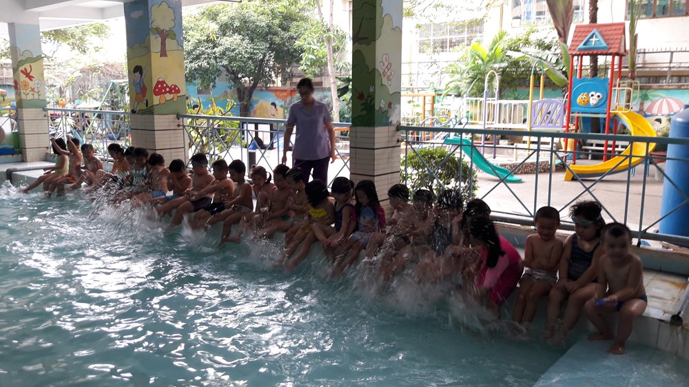 "Mình thích nhất trường có bể bơi và sân chơi rộng rãi con có thể học những bài tập bơi lội để thích nghi việc ở dưới nước, chạy nhảy chơi các trò chơi trong sân."